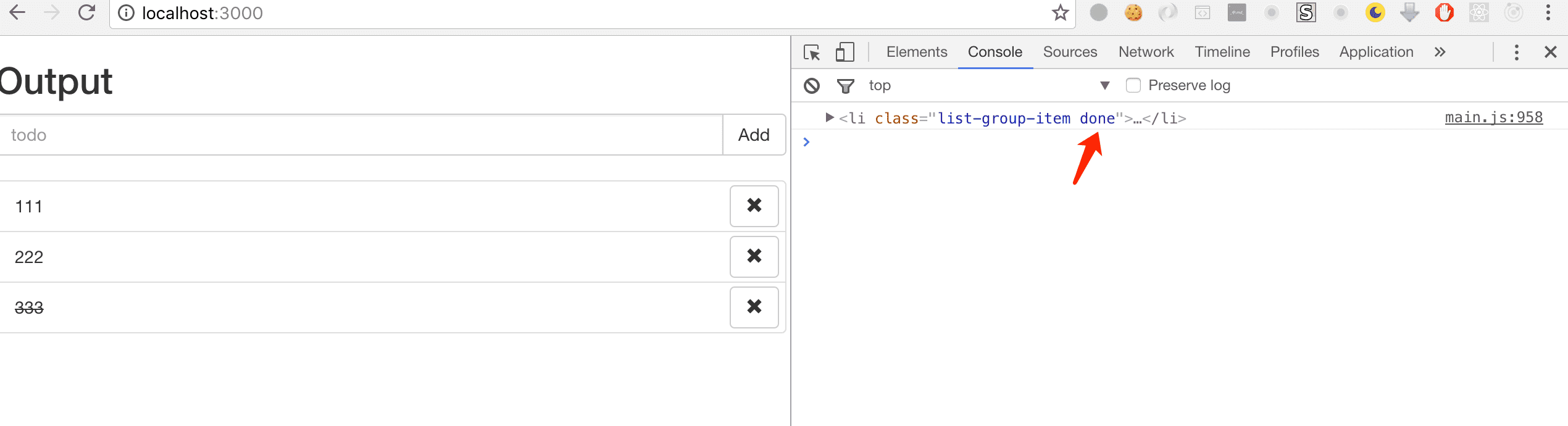 因为 todoItem 上还有其它功能性的按钮,比如移除 todoItem ,所以在 mergeMap 中我们用 filter 过滤掉了非 li 标签的点击事件。同时下一个 do 操作符中需要 consume 这个 $todoItem 对象,所以我们在 filter 后将它 mapTo 下一个操作符。