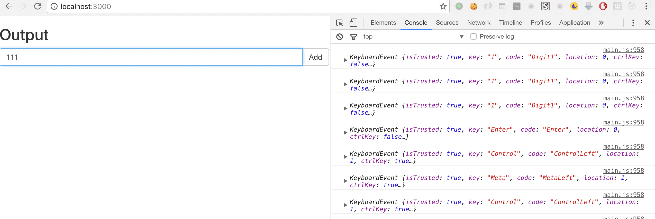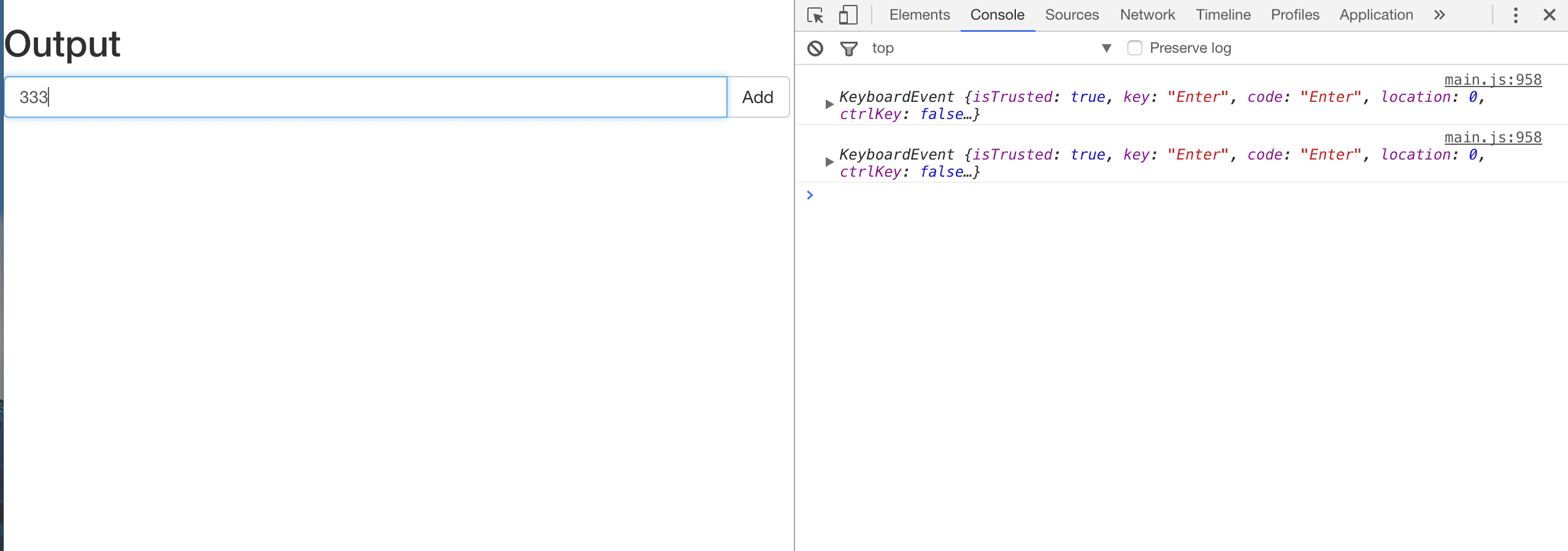 下一步我们来实现点击 add 按钮增加一个 todo item 功能。可以看到,在程序上这个操作和按下回车后需要的后续操作是一样的。所以我们只需要将点击 add 按钮事件也变成一个 Observable 然后与 按下回车Observable merge 到一起就好了: