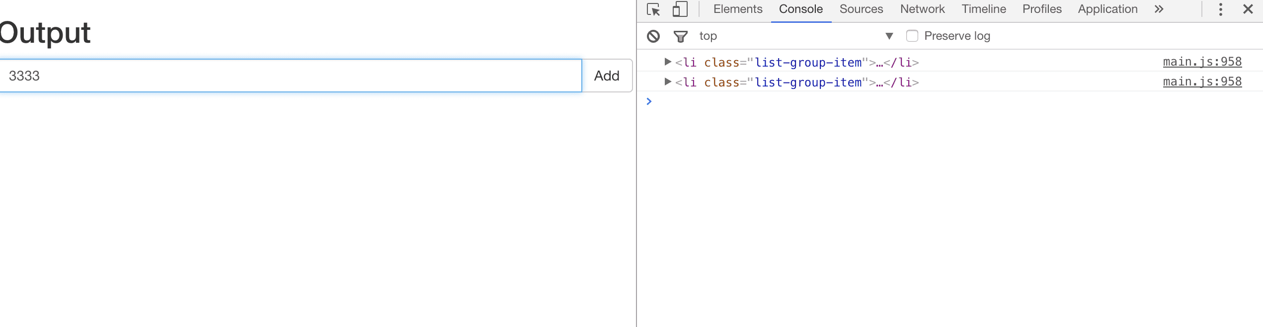 2. 在输入框中输入字符,点击 add 按钮,将输入框中的文字变成一个 todo item,同时清空输入框中的文字。