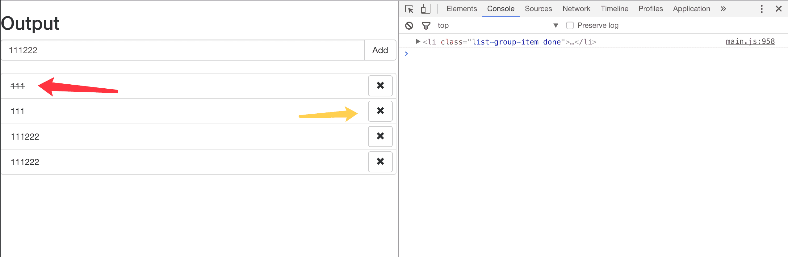 4. 点击 todo item 右边的 remove button,将这个 todo item 从 todo list 中移除。